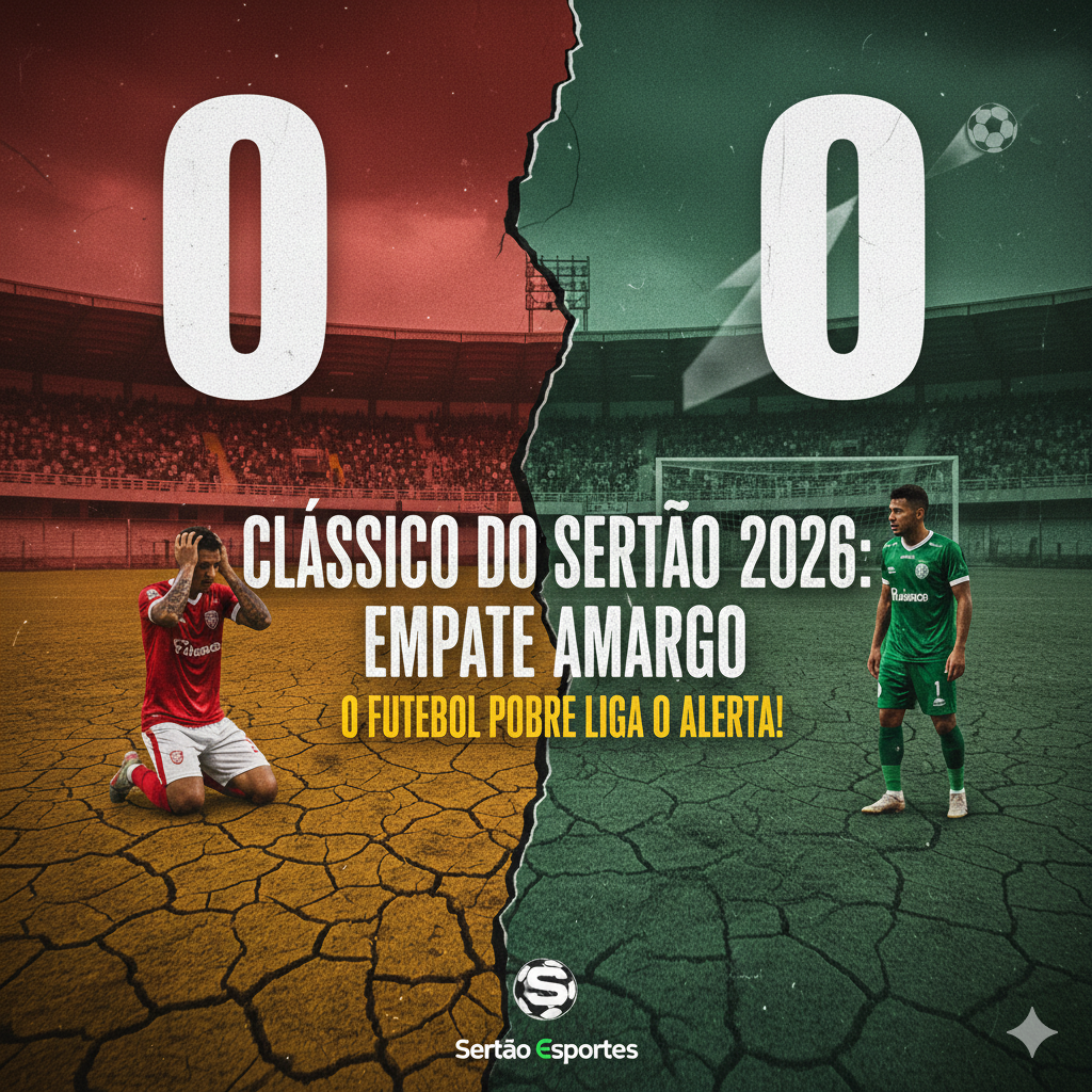 O Estádio José Cavalcanti estava pronto. O clima era de decisão. As arquibancadas, tingidas de alvirrubro e alviverde, pulsavam naquela que prometia ser a maior edição do Clássico do Sertão nos últimos anos pelo Campeonato Paraibano 2026. Mas, quando a bola rolou, a festa ficou restrita aos gritos das torcidas. Dentro de campo, Esporte de Patos e Nacional de Patos protagonizaram um duelo de futebol pobre, pouca inspiração e um resultado que não ajuda ninguém: o 0 a 0 amargo.